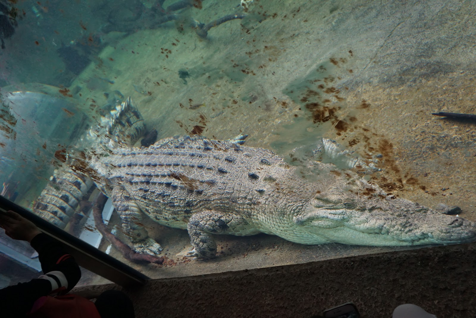 | A lone crocodile at the end of the 1 km walkway in Sydney Wildlife Zoo |