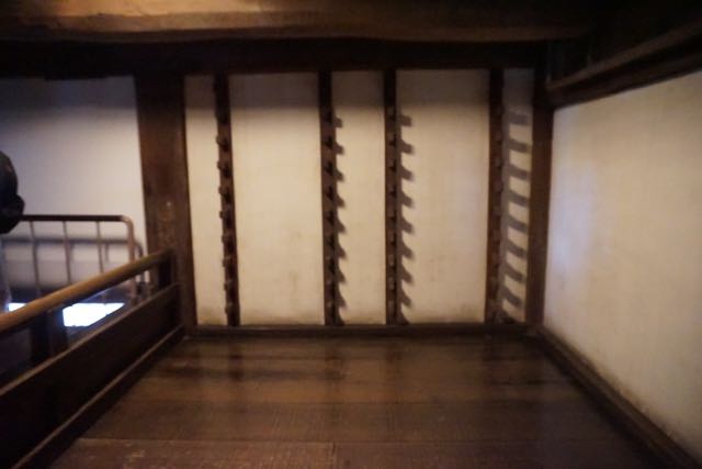 Soon we found ourselves at the entrance to the main keep. All visitors are required to remove their shoes before entering the main keep. I guess this is done for preservation purposes. There are designated pathways that visitors should follow while inside the main keep. Inside the main keep, I can see the entire Himeji Castle is made of wood. We passed by numerous empty rooms, which must have served as barracks or places where the soldiers of Himeji Castle stationed in even of attacks to the castle. Occasionally we spotted signs that attempt to explain what these rooms are used for. On the 2nd floor of the castle, I spotted some racks on some of the walls by the windows inside Himeji Castle, which served as storage for weapons for the faster reaction to attackers.