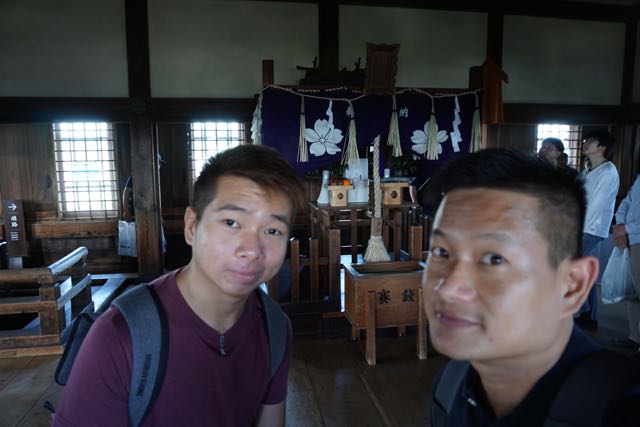 I climbed a small flight of staircase to the 6th floor of the main keep. There is a staff member stationed at the staircase welcoming visitors to the top floor of Himeji Castle. The 6th floor has a rather small floor space. There is a shrine located in the centre of the top floor in Himeji Castle. The Osakabe-jinja shrine seems to serve to protect visitors these days. The view from the top floor is stunning. I can see the entire Himeji City from the top floor of Himeji Castle Main Keep. Visitors stayed on the top floor the longest to take in the views of the city and to rest before walking down the steep staircase to exit the castle. My friend and I enjoyed the breeze and the scenery from the top floor of Himeji Castle.