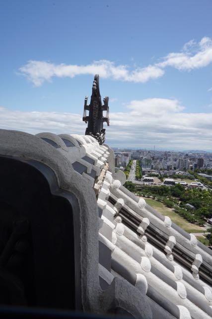 View of the roof from the top floor of Himeji Castle