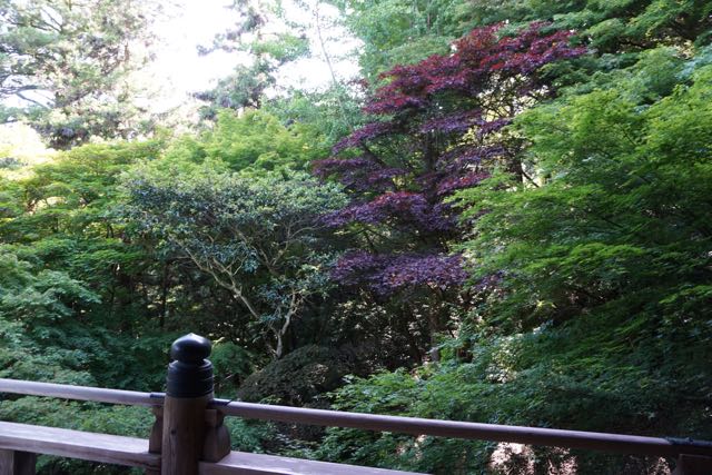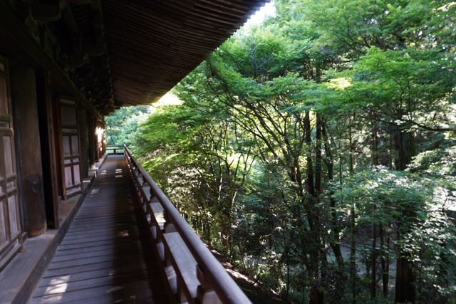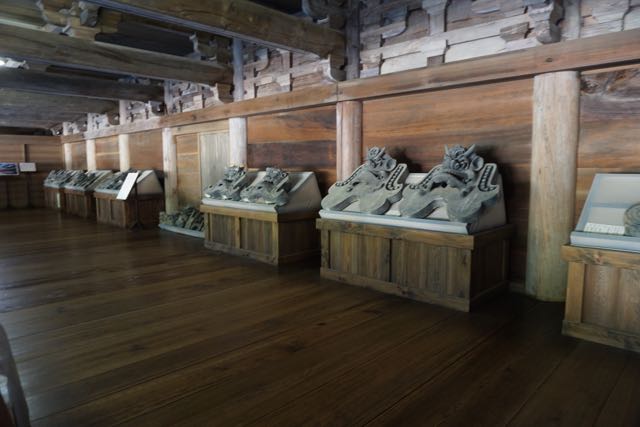 Connecting Daikodo and Jogyodo is the Dining Hall, known as Jikido. The 2 storey building has an open concept. This is the only building here that is opened to visitors. The original Jikido was built in 1174 and was dismantled and rebuilt in 1963. On the first floor of Jikido, a large section has some tables placed on it. This is a place where visitors can practise the art of zen through Japanese calligraphy. Behind the tables, a small section displays the roofing titles of the temples in Engyoji. The second storey of Jikido displays the artefacts of this temple, amongst it are some millennium old Buddha statues that were made out of wood. I like the balconies of Jikido on the 2nd level. The balconies stretch the entire length of the building. On one side, the square that the 3 temple buildings can be seen from a height, while on the other side, one can see the forest. I prefer the view of the forest as it brings peace.