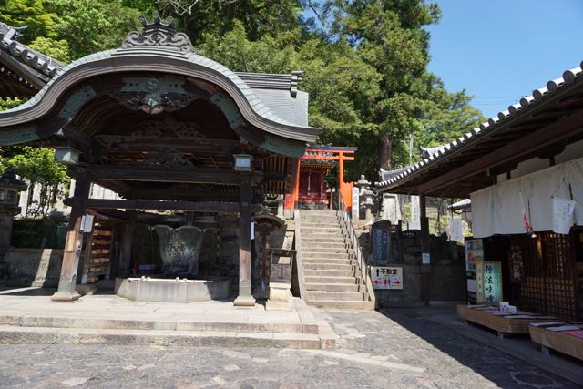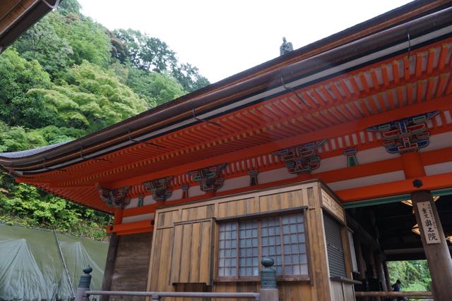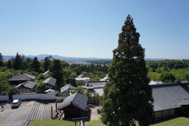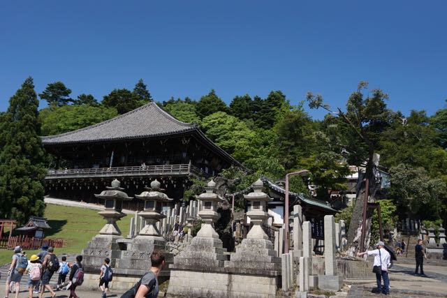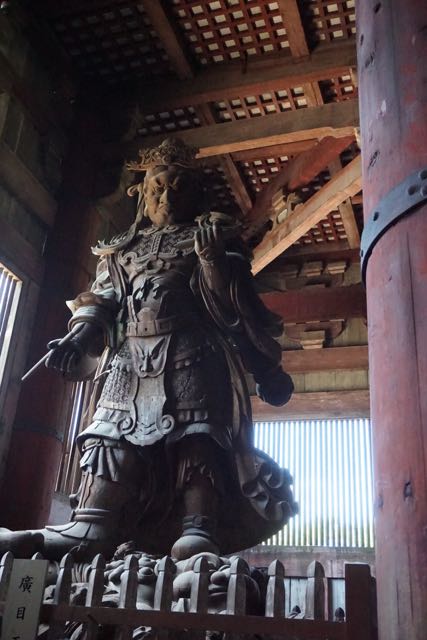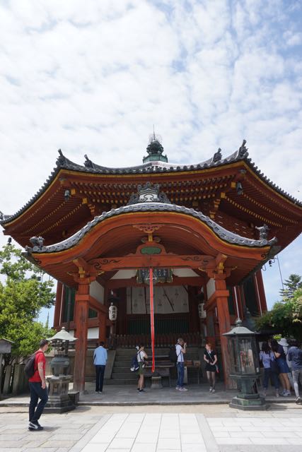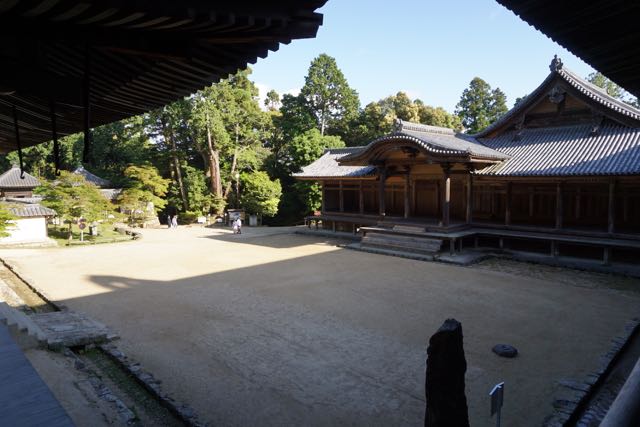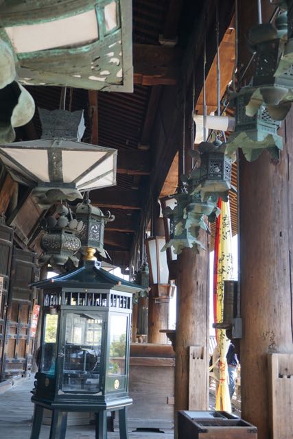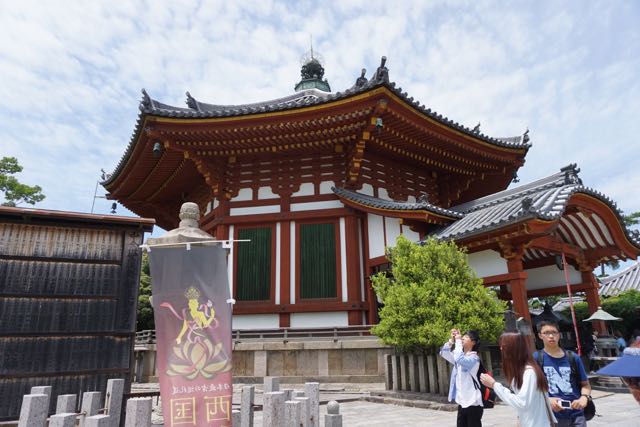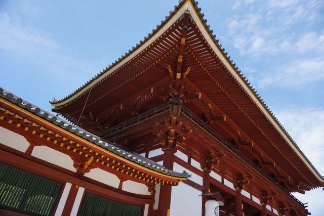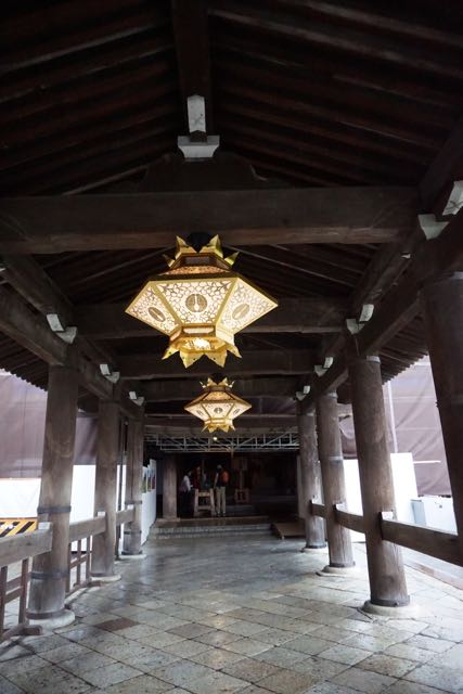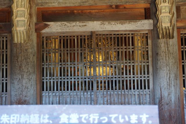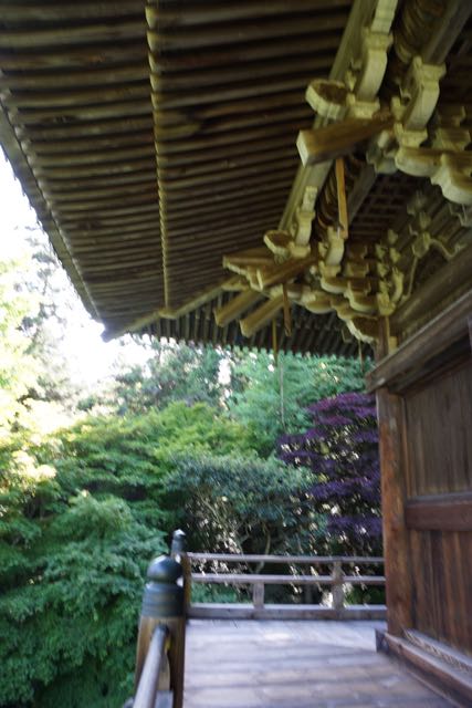 Opposite Jogyodo is the Daikodo, which functions as a Main Hall. The original Daikodo was built in A.D986 and was reconstructed in 1956. Compared to Jogyodo, the architectural design of Daikodo is a tad more elaborate. The single storey, double roofed Daikodo also appears to be constructed entirely out of wood with no traces of nails being used. Peeking inside the Daikodo, I can see statues of Golden Buddhas being placed inside, however, we can only offer our prayers outside the Daikodo as the interior of the building was sealed up.