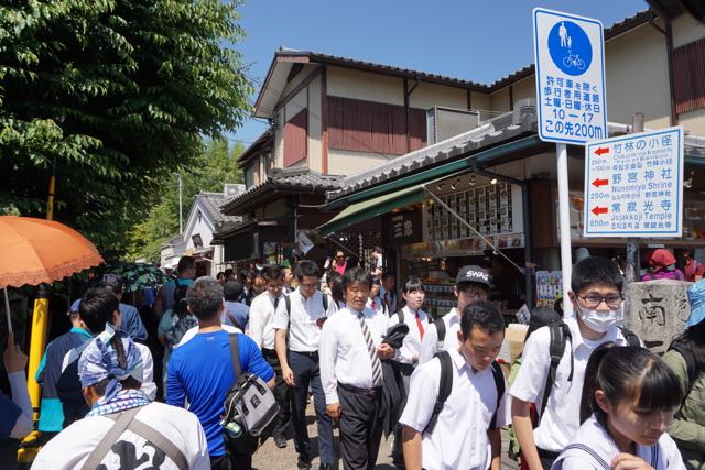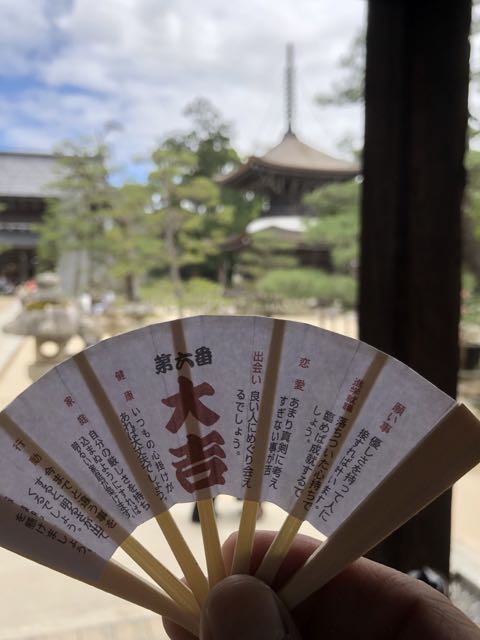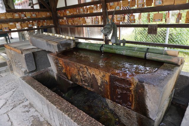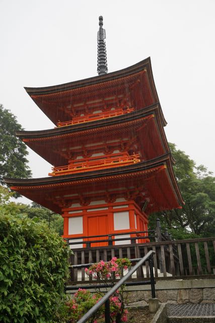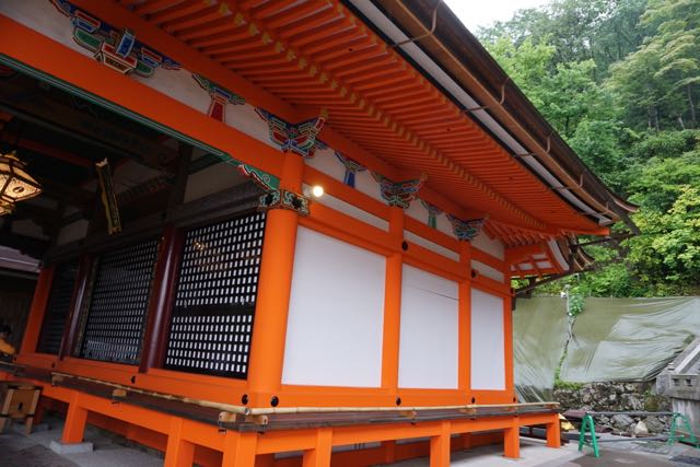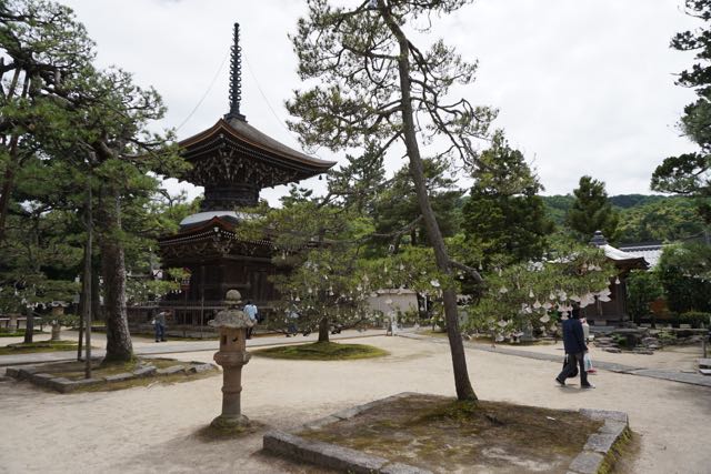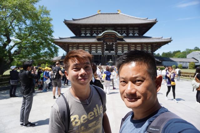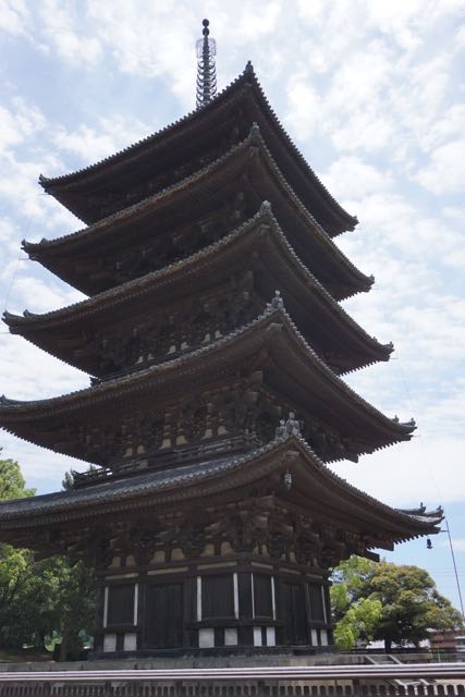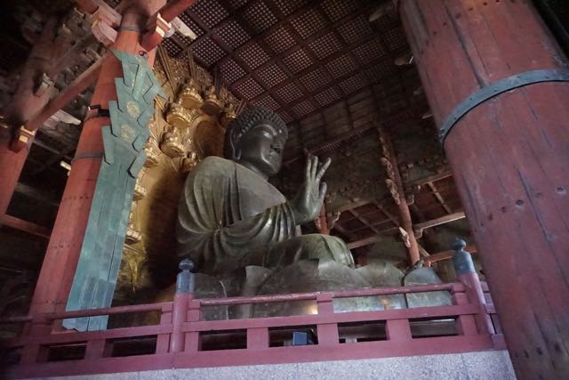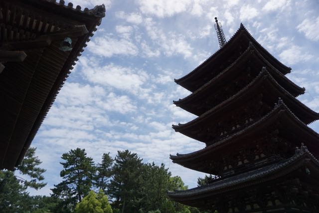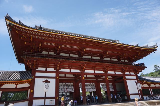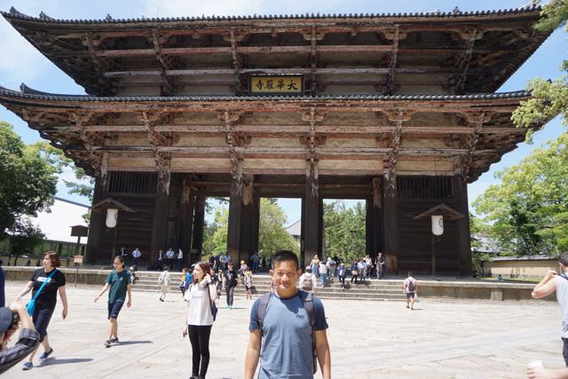 Opposite Jogyodo is the Daikodo, which functions as a Main Hall. The original Daikodo was built in A.D986 and was reconstructed in 1956. Compared to Jogyodo, the architectural design of Daikodo is a tad more elaborate. The single storey, double roofed Daikodo also appears to be constructed entirely out of wood with no traces of nails being used. Peeking inside the Daikodo, I can see statues of Golden Buddhas being placed inside, however, we can only offer our prayers outside the Daikodo as the interior of the building was sealed up.