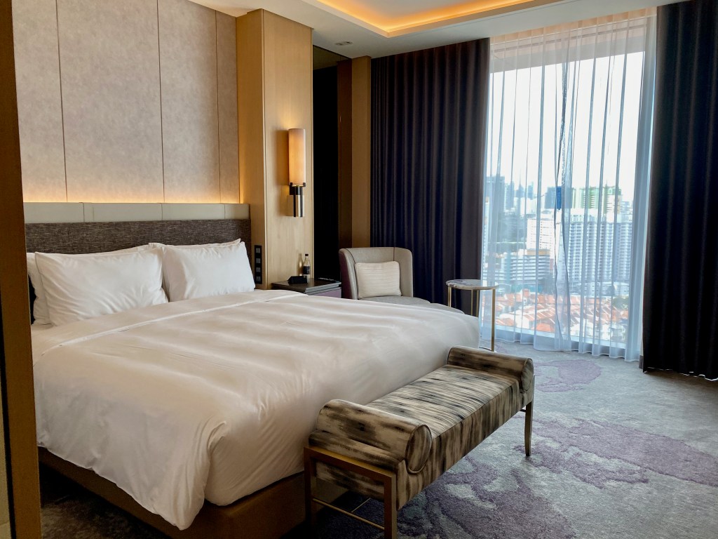 Sofitel has three properties in Singapore, two in the city centre and one on Sentosa Island. Sofitel Singapore City Centre is very well appointed and is located at the edge of the Central Business District in Singapore, making it a very convenient location for business travellers. The hotel is within 10 mins walk from Chinatown, one of the tourist attractions in Singapore, where the Chinese community used to congregate during the country’s initial years. The hotel is located right above Tanjong Pagar MRT station, with an entrance right next to the hotel, making this hotel a perfect place to stay for travellers who would want to explore the city-state via the subway system. There are a wide variety of dining options within 5 mins walk from the hotel, from local delicacies found in Maxwell Market, to Japanese and Korean food as well as western dining options within walking distance from the hotel. Residents at Sofitel Singapore City Centre will have no trouble finding food that suits their taste bud. Despite Sofitel Singapore City Centre being situated above a shopping mall and the 100AM shopping mall about 3 mins walk away, there are not much shopping options around the hotel. These shopping malls have limited options when it comes to shopping. Having said that, the convenience of having an MRT station entrance next to the hotel means guests can always shop in other parts of Singapore.