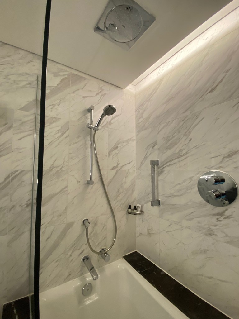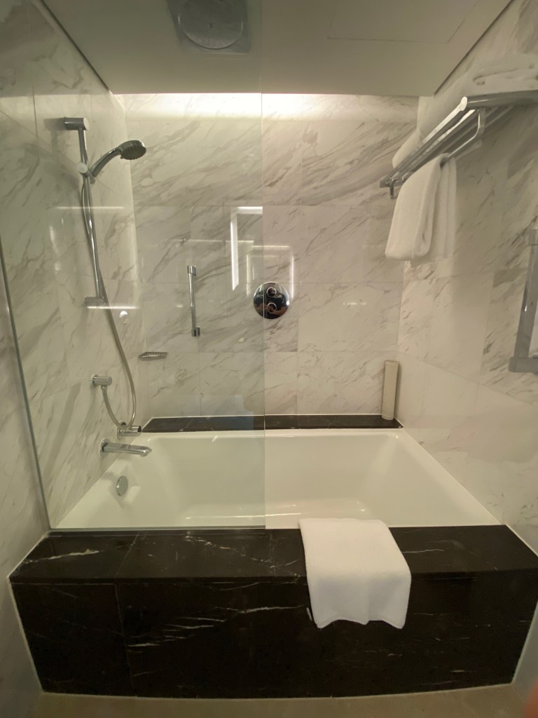 I find the shower/bathtub combination in the bathroom to be the Achilles heel in the Signature King Suite of Fairmont Singapore.