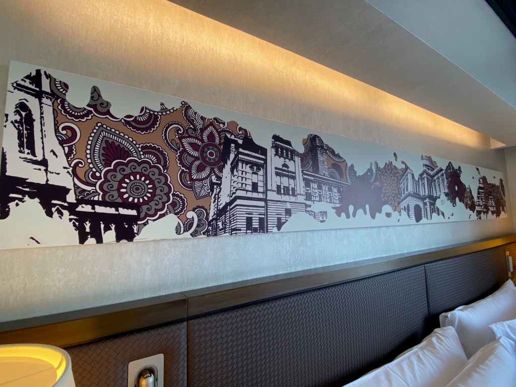 I like how Fairmont Singapore managed to find a conducive and private spot in the open Signature King Suite to snag the King bed. The King bed, marking the sleeping area, is tucked in one corner of the suite, providing us with privacy in an otherwise open concept suite. The King bed is very comfortable to sleep in, but I find the pillows a tad too soft for my liking. Despite the hotel’s best efforts in finding the firmest pillow they have, I still have trouble sleeping with the pillow. That said, the firmness of the mattress on the bed is superb. The use of down lighting in the sleeping area, lightly decorated with a Peranakan motive hanging above the headboard that gives a Singaporean touch to the suite, is very comfortable and not glaring to the eyes. The bedside table provided us with generous storage space to put away our lifestyle devices, while the power outlet by the bedside allows us to charge our devices.