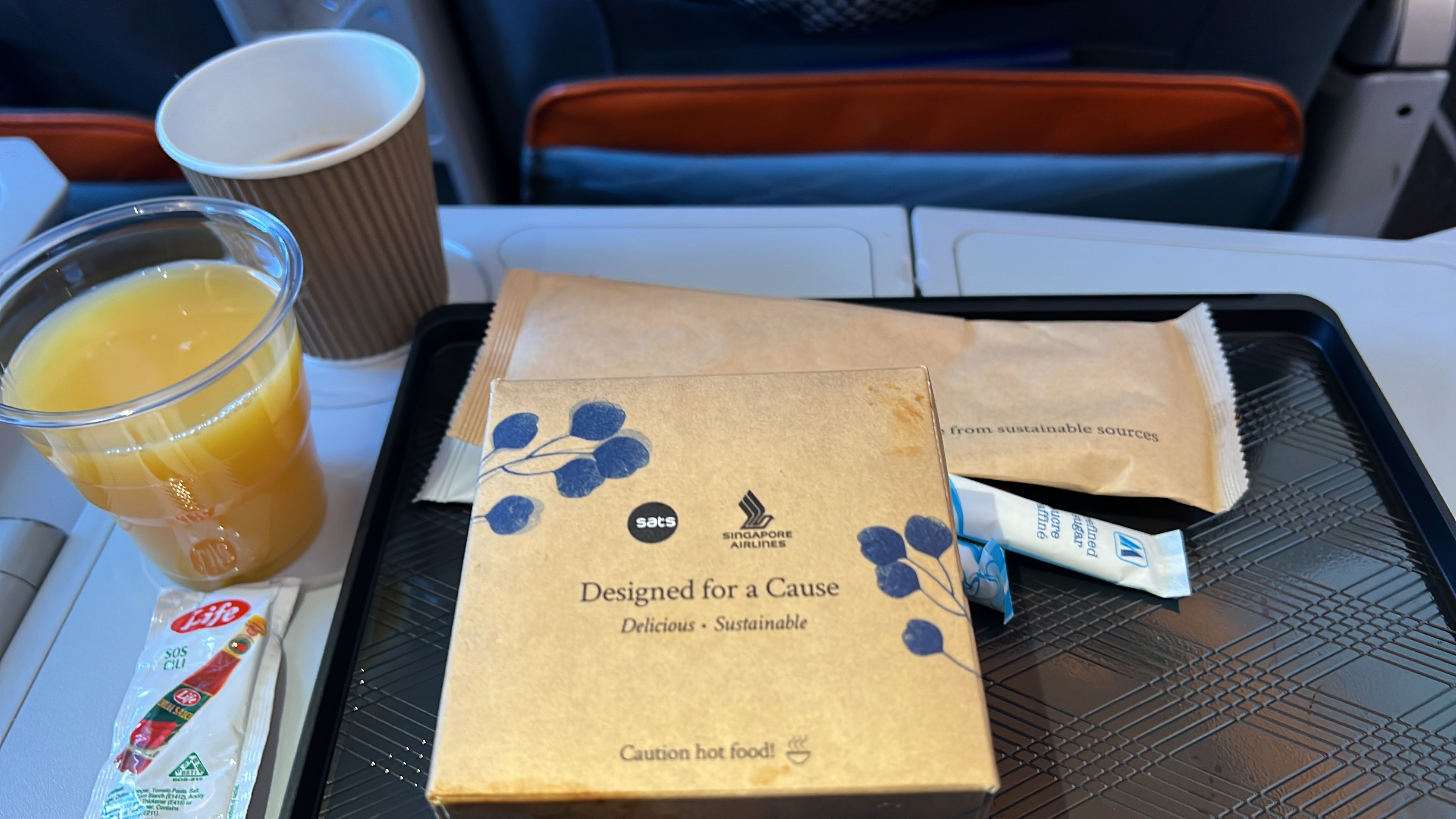 The biggest difference in flying pre and post-pandemic (besides the need to wear a face mask) lies with the meal service. Gone were the appetisers and buns that usually come with the meal. The inflight meal was only limited to the main dish, a dessert and a cup of coffee. The meal we received in the Premium Economy Class were the same as those in Economy Class. We were given chicken sausage options with scrambled eggs or pork congee for this flight. I opted for the Chicken sausage, packaged in a paper box, it was tasty, but the potato wedges buried under the scrambled eggs tasted soggy. The portion felt slightly smaller than in pre-pandemic times, and the presentation was not as tasty as before.