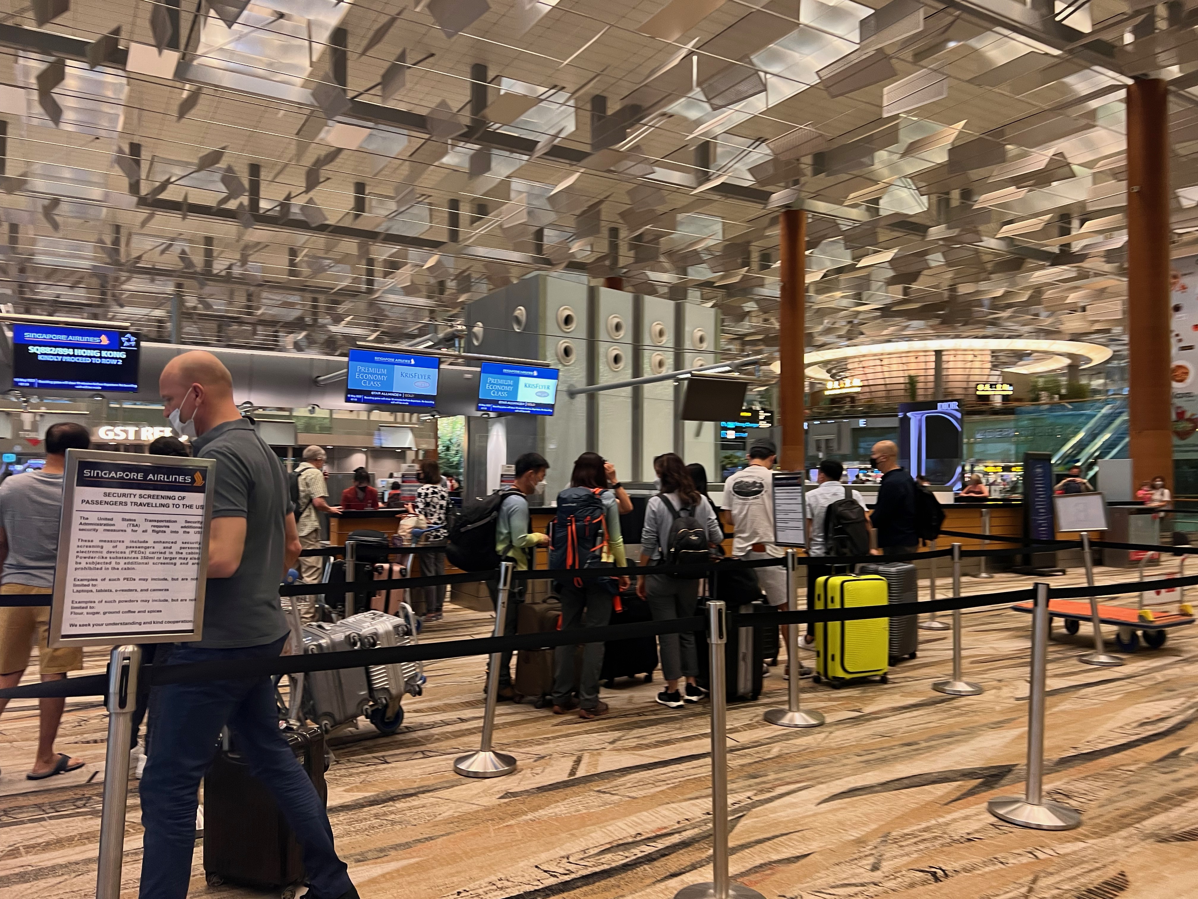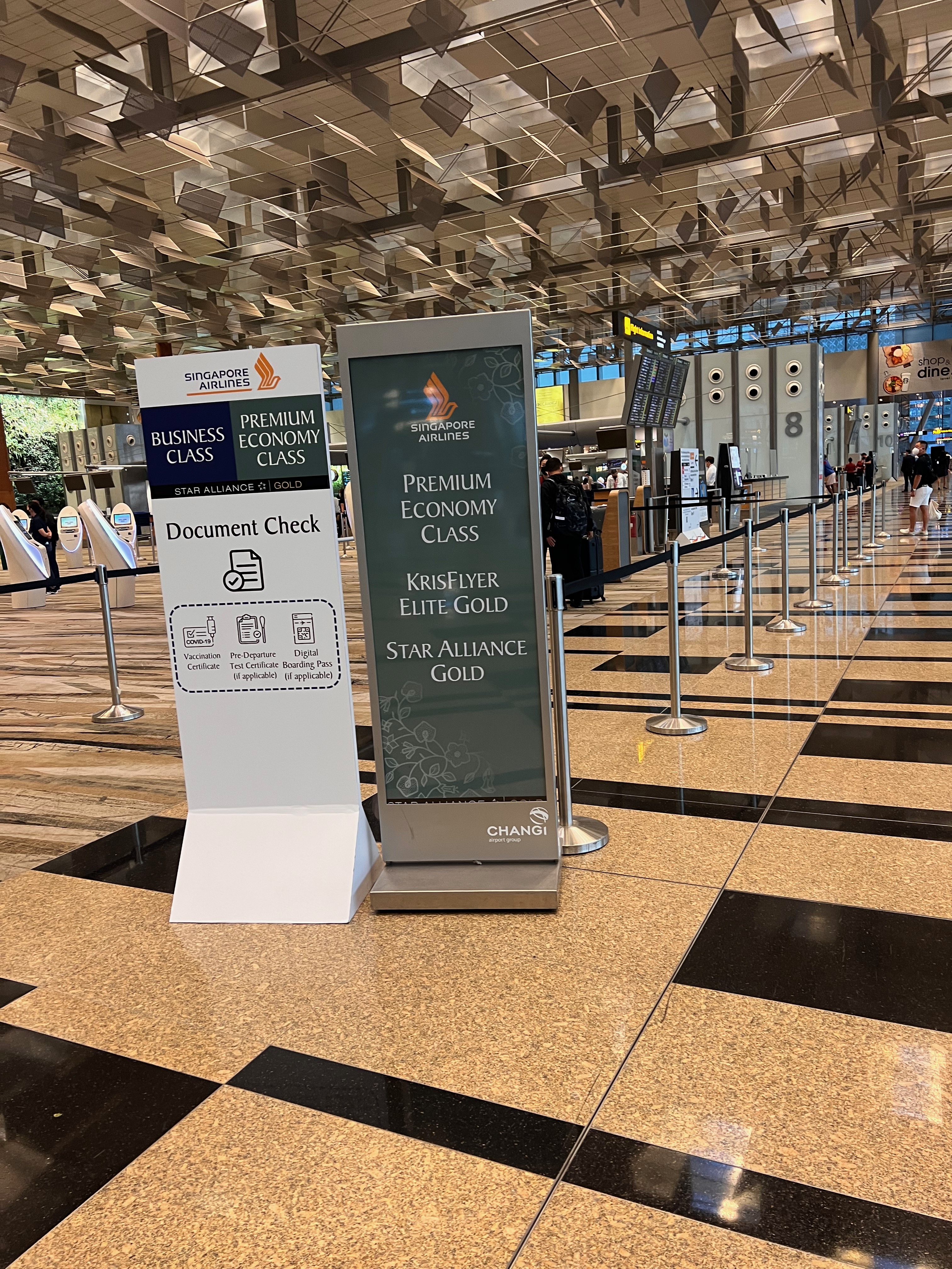 All Singapore Airlines have operated out of Changi Airport Terminal 3 since the pandemic due to the closure of Terminal 2. As both my friend and I are KrisFlyer Elite Gold members, we can use the check-in counter in row 8, dedicated to Premium Economy Class Passengers and KrisFlyer Elite Gold members flying to all destinations served by the airlines. Despite the short queue at the counter, the movement of the queue was a little slow due to document checks before boarding. The document checks for Thailand were very straightforward, and we only had to show the ground staff our Thailand Pass. Our check-in was processed quickly, and we were headed to customs within minutes.