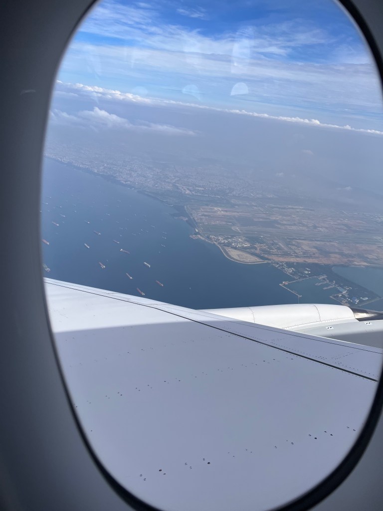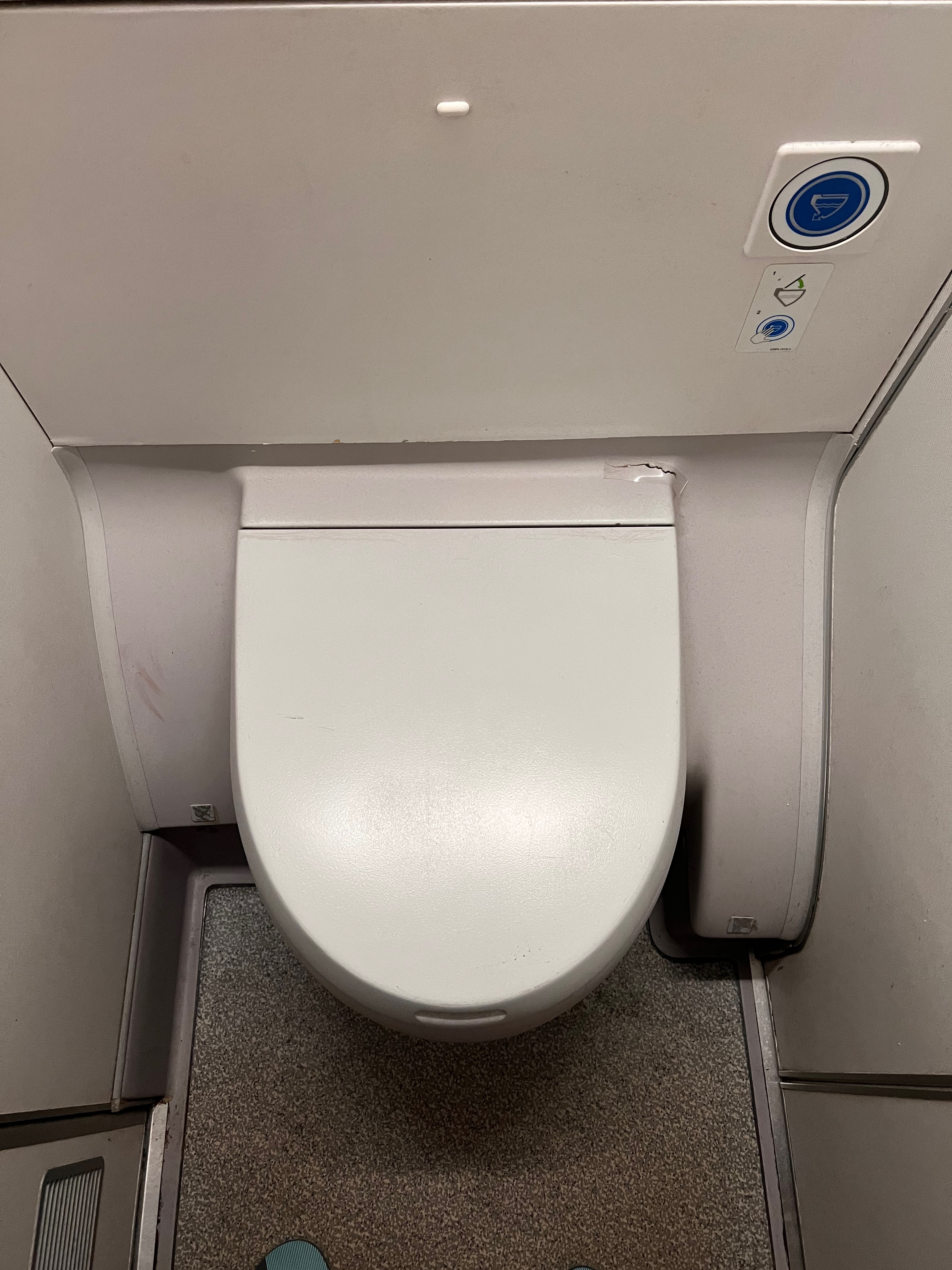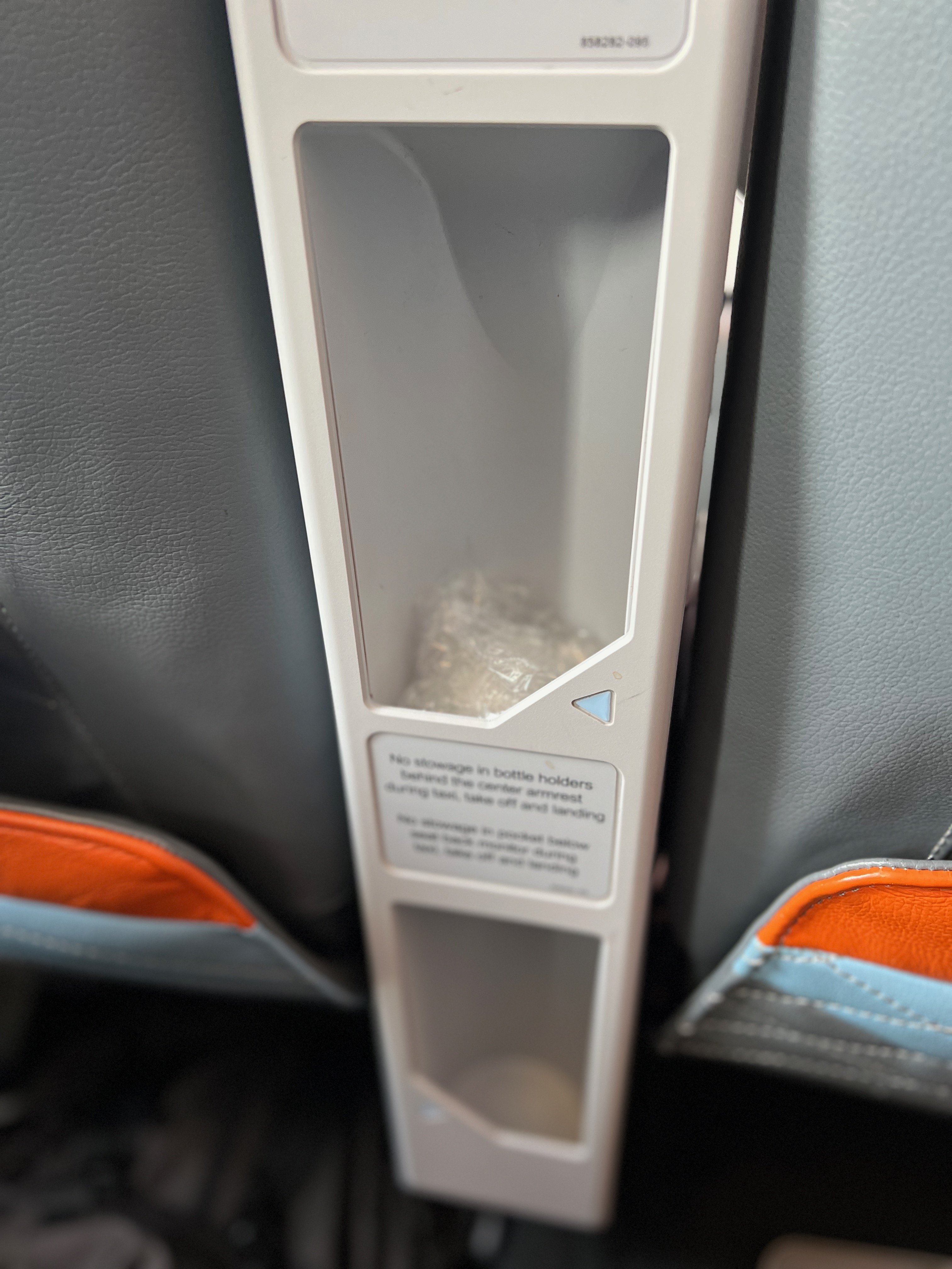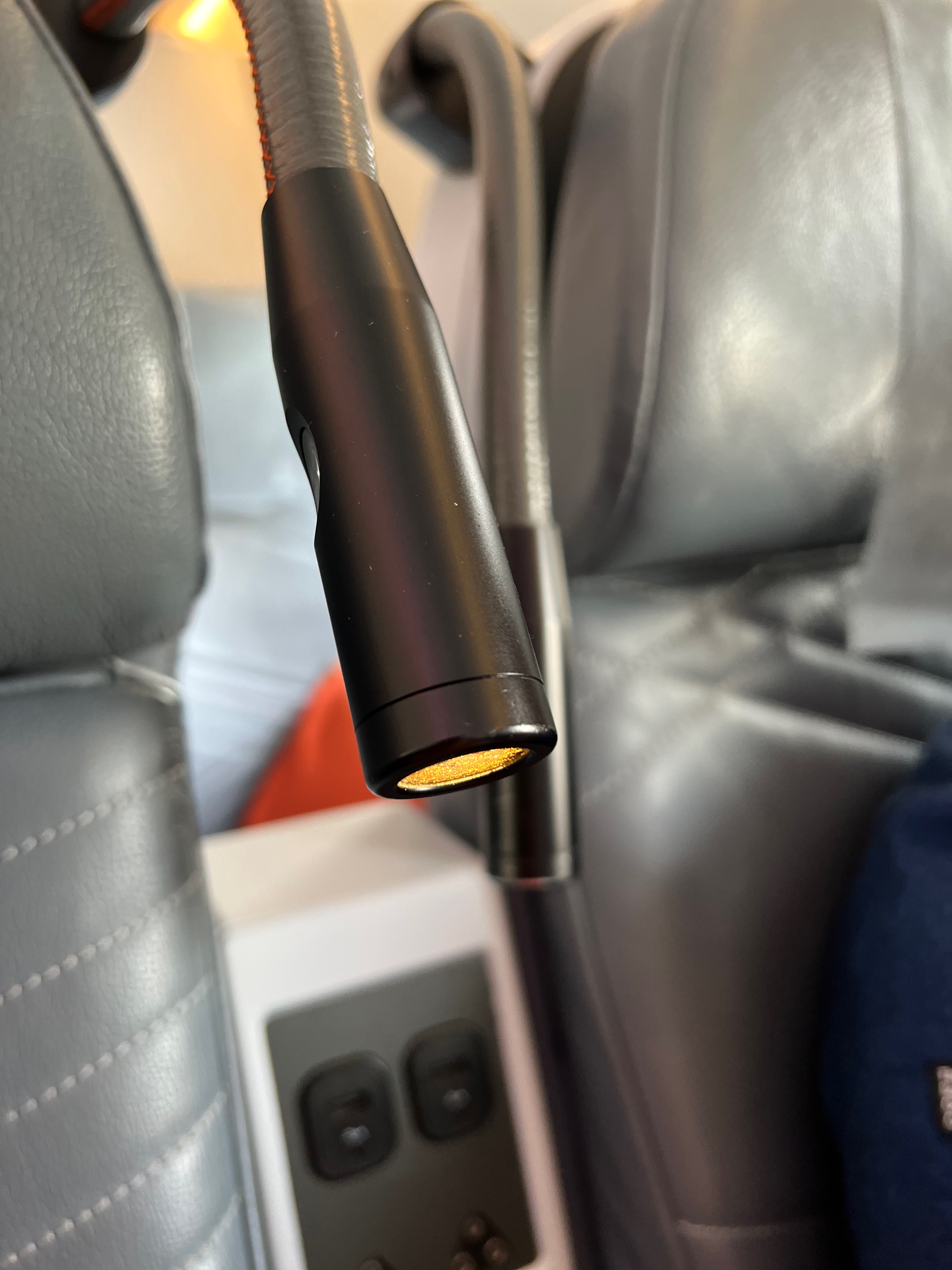 Stowed on the seat’s left, the IFE controller resembles a portable gaming device. The touchscreen area of the IFE controller is very responsive. I was able to display the content of the movie that I was watching or the flight map on the IFE controller without disrupting the show I was watching on the TV screen. The noise-cancelling headphones provided are the same as one would receive in Business Class. The headphones effectively block out noise, but putting them too long makes my ears feel uncomfortable.