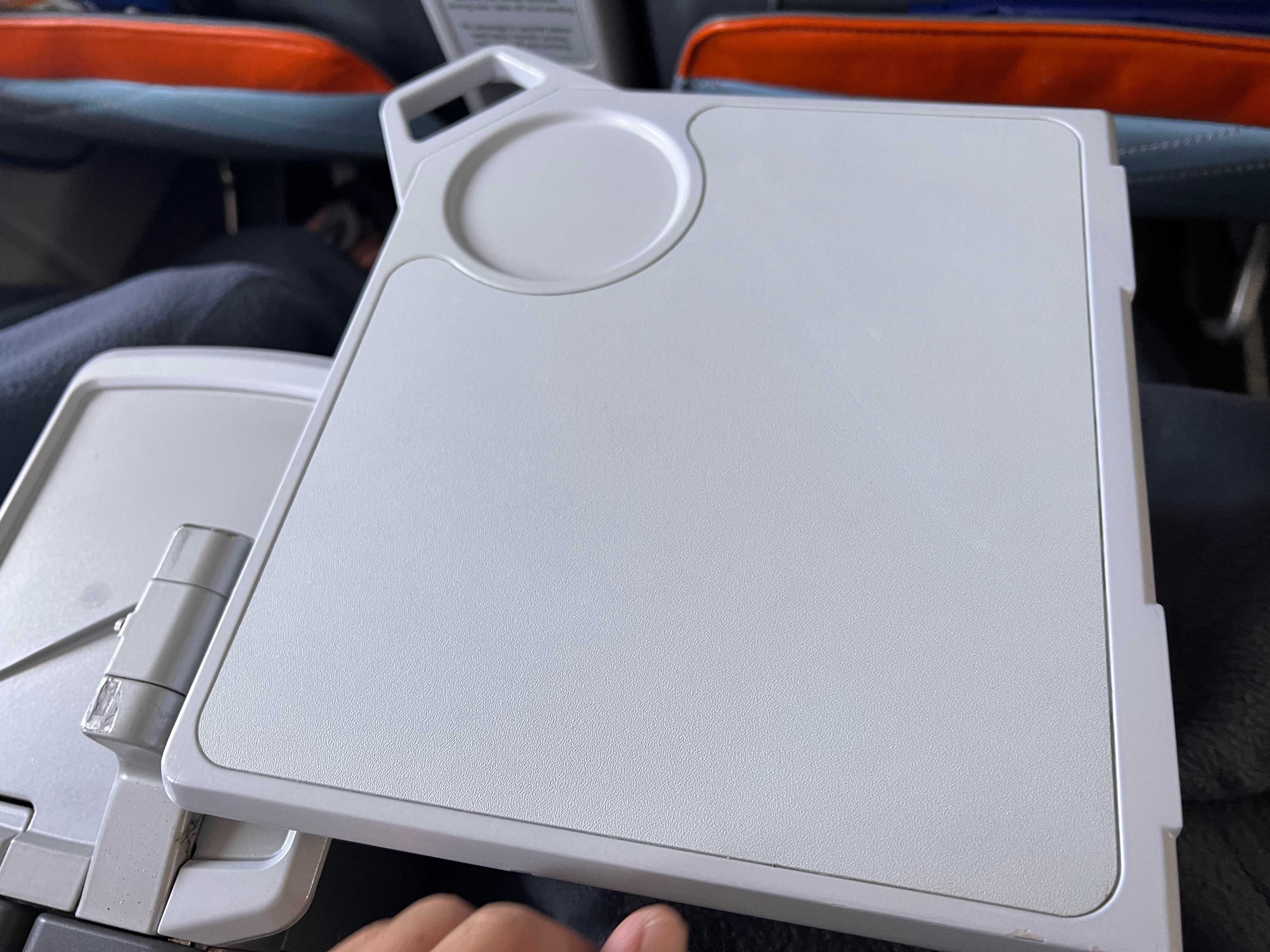 There are more in-seat storage areas in the Premium Economy Class than in the Economy Class seats. We were able to stow away some small items in either of the seat pockets in the Premium Economy Seat. The netted top seat pocket is extremely useful in putting away my passport and some small items and is large enough to stow a tablet. The lower seat pocket, where in-flight literature used to be found, provided additional storage space during the flight. Between the two seats in front of us were a couple of small open shelves meant to store water bottles. Since this is a short 2-hour flight, bottled water was not provided. Hence we found no other practical use for this open shelving. Despite being a relatively new product, the Premium Economy Seat I selected started showing signs of ageing. Firstly, the recline buttons did not work well. I had to press hard to recline or bring out the calfrest. Then there is the tray table, which was slightly loose at the joints, causing the tray table to slant downwards at a gentle angle. Fortunately, this defect did not affect my meal consumption, but it did affect me when I used the table to fill in the passenger arrival card. The headphones also show signs of wear and tear where the PVC leather around the ear cups peeled off. I highlighted these defects to the stewardess, who did not seem to bother registering my concerns.