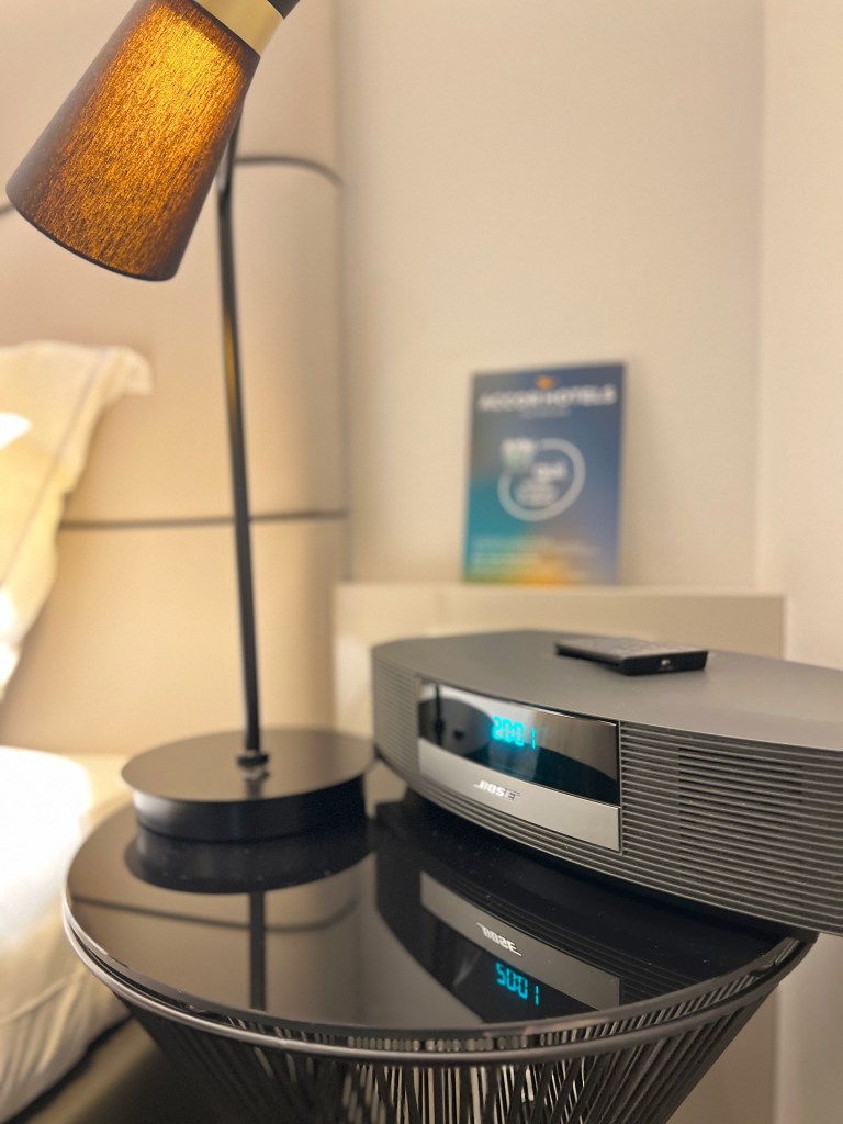 We could see the rest of the Junior Suite from the second door. Despite having 35m2, the space in the suite feels tight with the fitted furniture. I guess part of the real estate is dedicated to the entryway, which leaves little room in the rest of the Junior Suite. We were in the sleeping area as soon as we passed the door after the entryway. The decor in the sleeping area is contemporary, exuding a comfortable and cosy feel. The lighting in the sleeping area matches the suite’s theme, adding to the comfortable feel. The sleeping area is furnished with a king bed, occupying a bulk of the space in this area. The king bed is comfortable to sleep on with its firm mattress and the pillows provided by the hotel. We found the bedside tables were small and offered limited space to charge our mobile phones.