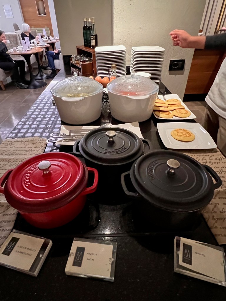 Every morning we met Giulio, the elderly gentleman working in the restaurant. Giulio took care of us very well at the restaurant for breakfast. He came across like a grandfather taking care of his grandchildren, constantly checking with us if we wanted more coffee or if we had enough to eat. He oriented us to the buffet corner on the first morning we were at the restaurant for breakfast. Giulio efficiently dispatched our orders for cooked eggs and coffee, not allowing us to wait too long for our food.