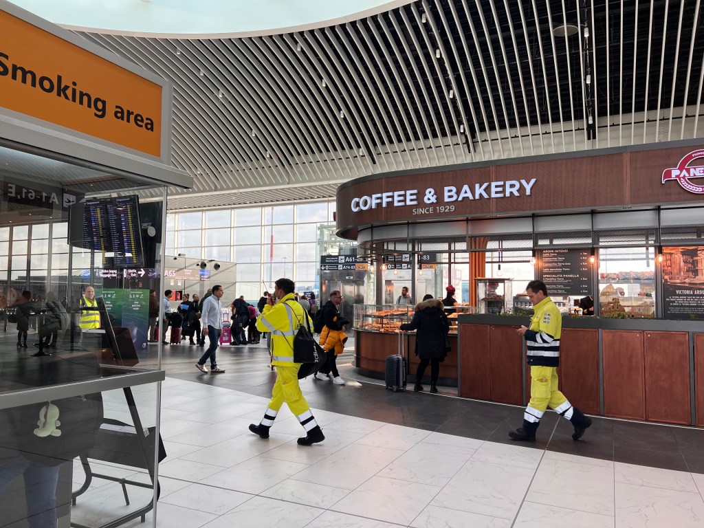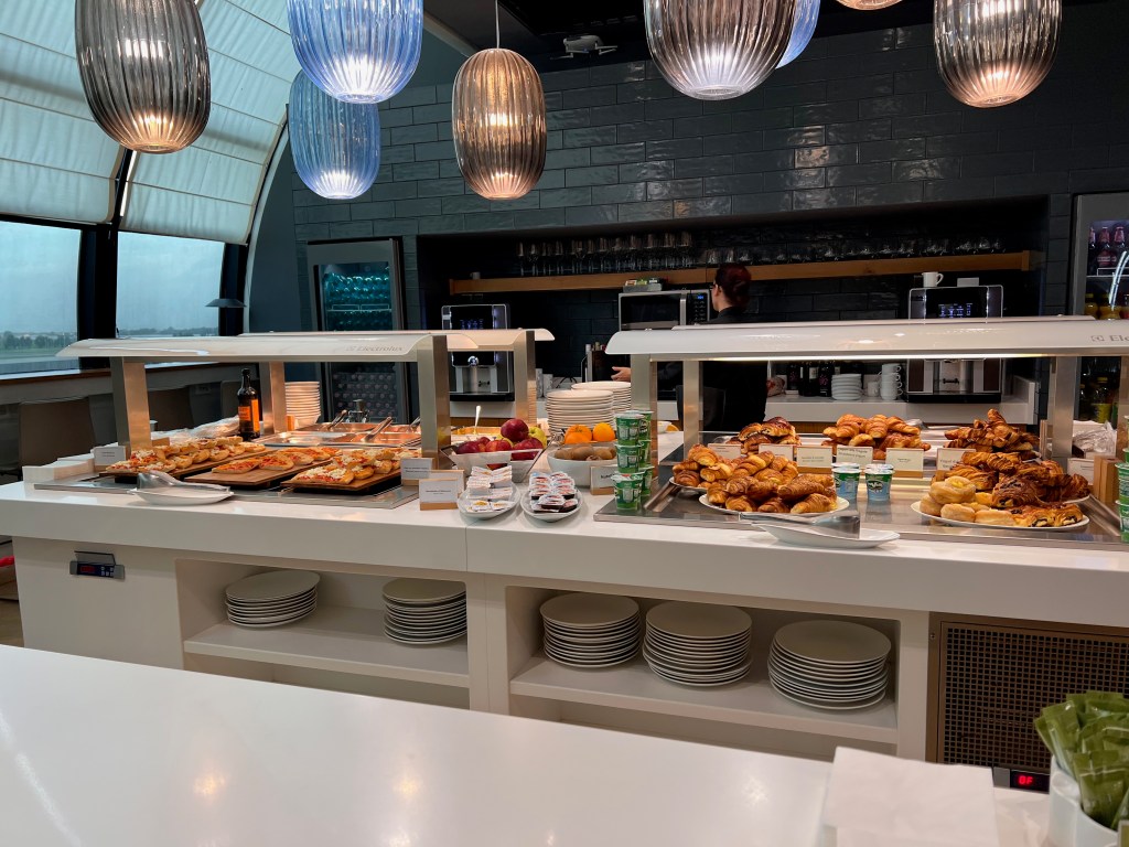 As we were flying in Economy Class, we were not entitled to Lounge access. However, being a Priority Pass holder, I got my friends into the Prima Vista Lounge. The Prima Vista Lounge is located in Terminal 3, about 10 minutes from the security counters. Prima Vista Lounge is a small lounge with limited seating. Most of the seats face the apron of Rome Fiumicino Airport. We found several larger dining tables that can seat up to six passengers. The food offering is quite decent, and the food quality is good for a small lounge serving breakfast. Prima Vista Lounge serves up mainly pastry, piazza, fruits and some pasta. Prima Vista Lounge still practises pandemic measures, passengers are not allowed to pick the food themselves. Lounge staff are stationed at the food area, picking the food that the passengers request and heating them in a microwave oven before handing it over to the passengers. As the lounge is in Terminal 3, there is a 20 mins walk to get to our gate in Terminal 1 of the airport.