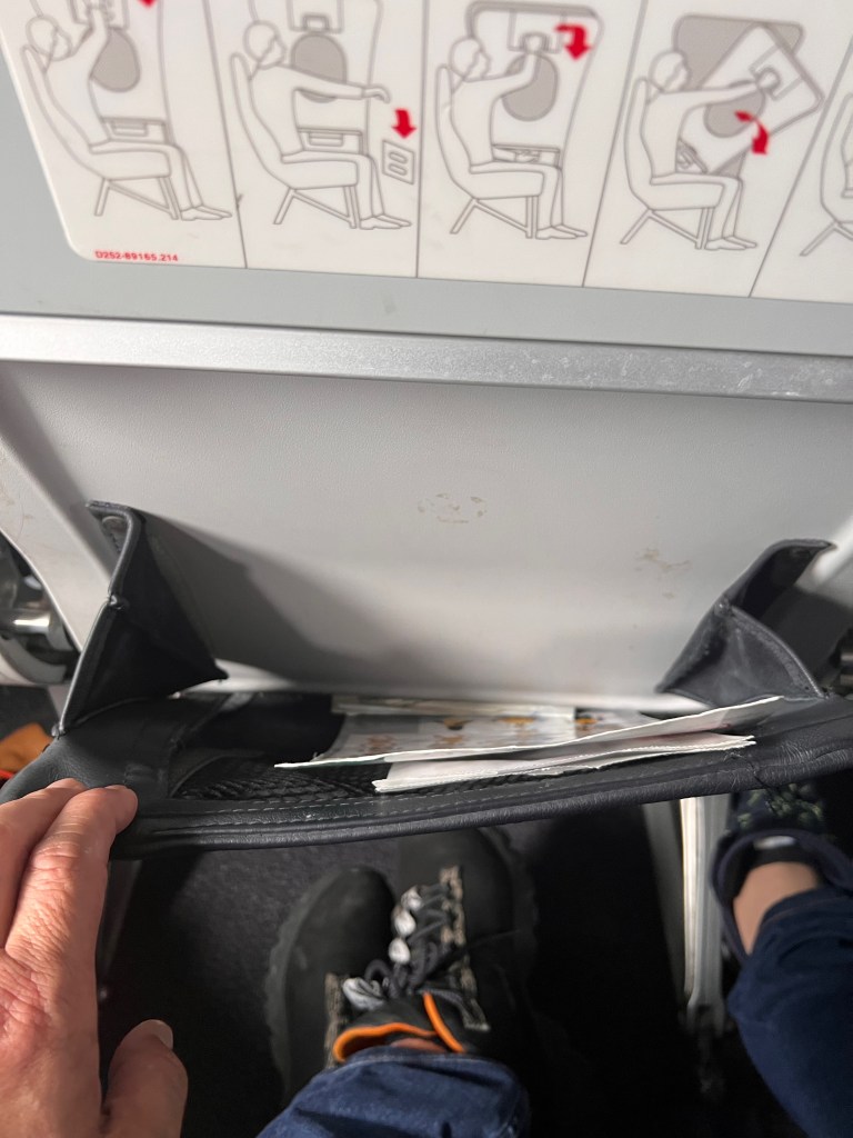 Seats onboard ITA Airways A319-111 are clad in black leather which thick paddings, making the seat very comfortable. As we were sitting in the exit row, the legroom was excellent on this row. The set-up onboard ITA Airways A319-111 is very simple, with only one button to recline the seat. Buttons to control the overhead reading light and call attendant are on the ceiling above the seat. The seat has a very large tray table, capable of putting a 14″ laptop. The seat pocket is very simple and holds a very limited amount of items.