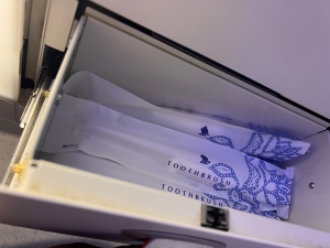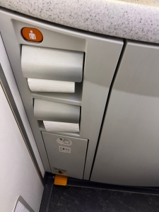There are several lavatories dotted across the two sections of the Economy Class. Passengers in the forward section can use the front Economy Class lavatories and those between the two Economy Class cabins. Those sitting in the rear area of the Economy Class can opt to use the lavatories in the middle of the aircraft or those at the rearmost section of the plane. The lavatory onboard is not exactly the largest, but it is very functional. The mirrors in the lavatory make the space appears larger than it is. The hardworking cabin crews on Singapore Airlines constantly kept the lavatory very clean for the duration of the fight. I like the touch-free features, such as the sensor-activated tap and the toilet flush to the step-activated trash bin cover, which provided convenience to passengers and were extremely important in this endemic period. Singapore Airlines is one of the few airlines worldwide that still provides toothbrushes in their lavatories other than the standard hand soap.