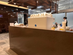 As Singapore Airlines is a Star Alliance member, we could use any Thai Airways Royal Orchid Lounge scattered throughout Bangkok Suvarnabhumi. The nearest Royal Orchid Lounge is right after the fast-track immigration counters, and this is where we headed first. The Royal Orchid Lounge seems to be refurbished recently, it differed from what I remembered pre-pandemic. The newly renovated lounge feels more posh and relaxed. The first thing that welcomed us as we walked through the entrance to the Royal Orchid Lounge was a bar serving up all sorts of cocktails and alcoholic drinks (it is a pity that they do not serve the Thai Airways signature drink – Violet Bliss). The Royal Orchid Lounge clearly distinguishes the dining area from the lounging areas. The dining area is located nearer to the buffet tables that come with proper tables and chairs for passengers to dine comfortably. The lounging area, furnished with armchairs and a side table, is located towards the centre of the lounge. The flora feature walls tastefully decorate the lounge and function as barriers between lounge chairs, creating a semi-private space for passengers to relax (instead of staring awkwardly at each other). Unfortunately, the buffet selection at the Royal Orchid Lounge is a tad disappointing. There is very limited food available in this lounge, we were only given a choice of four hot food items to choose from. While I applaud Thai Airways for catering a section for Halal passengers, I think they can do better than offering only plain rice in their Halal section. Lucky for us, we were not too bothered about the limited food selection at Thai Airways Royal Orchid Lounge as we wanted to check out the recently reopened Singapore Airlines SilverKris Lounge.