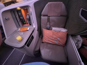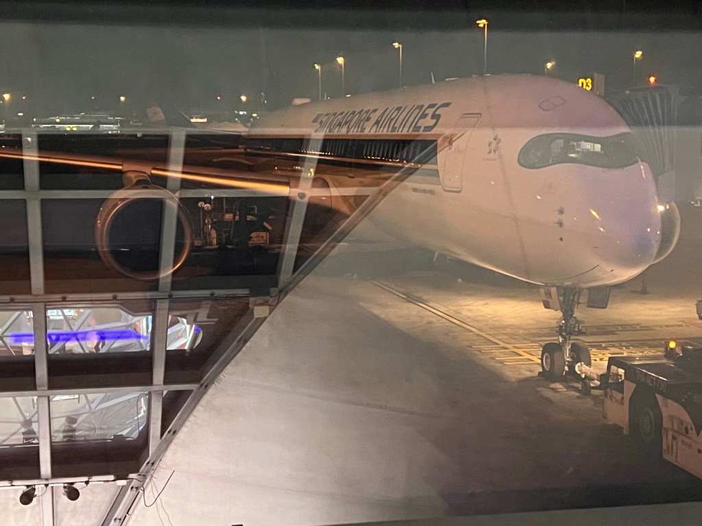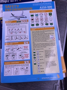 Singapore Airlines uses mainly the A350-900 and B787-10 to fly between Bangkok and Singapore. Occasionally, Singapore Airlines might deploy their A350-900 long-range aircraft, configured with Premium Economy seats (the airlines will not sell these Premium Economy Class seats instead these seats were sold as extra legroom seats) for this short 2 hr flight. The aircraft we flew today is the version of A350-900 that was configured for medium-haul flights with regional Business Class seats.