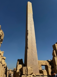 We were guided through the massive columned hypostyle hall to an open area with several Obelisks. There are a total of about 20 obelisks being erected in Karnak Temple, but only three remain standing today. Ahmed pointed to one particular obelisk and told us this was erected by Queen Hatshepsut, pointing out the hieroglyphs inscribed on the stone structure. This is the tallest standing obelisk in the entire temple, which has stood the test of time, standing unwavering to the elements for more than 3,700 years. Hatshepsut erected two obelisks; one fell and was displayed near the sacred lake.