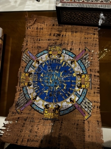 We made three brief shopping stops after Philae Island. The first shop sells papyrus, and we were shown how papyrus was made. The art pieces on sale were beautifully painted, some depicting scenes of famous sights in Egypt, such as the pyramids. I got a papyrus art portraying the sky goddess Nut, and my friend got the Dendera Calendar and a painting of the Ankh, the ancient Egyptian symbol of life. We also stopped at a perfume shop and an Egyptian cotton shop.