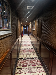 The lounge is located opposite the main reception onboard MS River Tosca. Decked in dark brown wooden finishes, the lounge exudes a sense of calmness and elegance. There is a bar at the lounge where guests can order drinks, wines and cocktails from (extra charges). A daily speciality cocktail is on top of the boat’s list of cocktails. The lounge is another venue for us to hang out when we are not in our cabin or the sundeck, as it is usually quiet. The couches and dining chairs are furnished mainly on the parameters of the lounge, leaving the centre part of the lounge empty. We had our welcome cocktails in the lounge the first time we boarded, and the boat organised nightly talks from the Egyptologists for guests to understand more about the history of Egypt. Then, there were nights when we saw performances of traditional Egyptian dances here in the lounge.