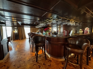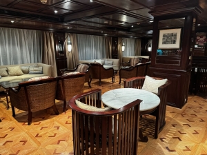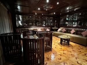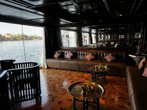 The library onboard MS River Tosca is inside the lounge on the main reception deck. The library is an enclosed area where we see books (not sure if they are for display purposes), a chess set, a backgammon board and a shisha inside. I am pretty sure the shisha is for display purposes. I thought the library was a great place to hang out watching life on the River Nile flow by at the water level and in an enclosed space. It is furnished with a large couch and some chairs that look out into the Nile River through the floor-to-ceiling glass window. We saw that the library was mostly empty during sailing onboard the MS River Tosca.