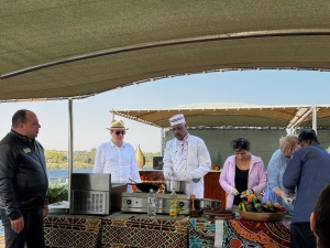 Meals are served in the main dining room on the boat’s Nile Deck (Deck 1), just one deck below the reception onboard MS River Tosca. We were told that the cruise company has a farm in Luxor, where most of the produce used to prepare the meals came from. Every meal served was Western cuisine, except for a few days when we saw some Egyptian food on the menu. Most lunches were buffet-style, usually with two meat and two vegetarian options. There is a good selection of salad and starters, and we were spoilt for choice for desserts. Dinner is served in a restaurant-style, where we are given a menu with appetisers, mains, and desserts. The restaurant staff was happy to take our orders and customise the options. Drinks and wines are included in the meals onboard. The food prepared onboard was delicious and of high quality; we enjoyed every meal and looked forward to the next meal. The menu changes daily, and we were well fed by the Chef team onboard the MS River Tosca.