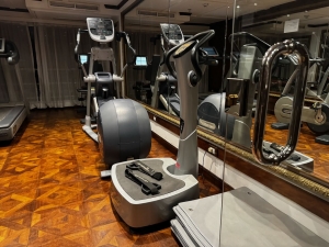 A small gym on MS River Tosca is located on the Pyramid Deck (Deck 4). The minimalist gym has only cardio machines: two stationary bikes and a treadmill. We also found two vibrating workout machines onboard.