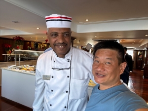 The staff at the dining hall were amazing. They would remember our preference for seating and always brought us to our preferred table. They always found a good alternative when our preferred table was unavailable. The staff remembered that we liked spicy food and would always bring us a bottle of hot sauce without asking for it. There was an occasion when the dining hall staff told the head chef onboard our preference for spicy food and gave us a small bowl of spicy sauce the head chef prepared. The head chef is an elderly gentleman who was active in the dining hall during meal time, introducing the dishes to guests. He was very personable and took care of us very well. He would always recommend the speciality of the day for us to try. We had a great time onboard MS River Tosca, mostly due to the personable staff onboard who would always lean in to help without fail.