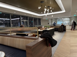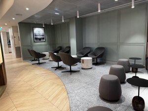 There are two Star Alliance Lounges at Paris Charles de Gaulle Terminal 1. The older lounge is assigned to those travelling within the Schengen zone, and a newer one was just opened in Oct 2023 for passengers travelling outside the Schengen zone. The new lounge is located after the security clearance on level 3 of the terminal building. The new Star Alliance Lounge feels airy and open, thanks to the floor-to-ceiling window that faces the tarmac. The wooden parque flooring matches the white marble entrance, giving it a posh look. The Star Alliance lounge has three distinct areas: the lounge area, the dining area, and the work area. The lounging area occupies a bulk of the floor space in the lounge, occupying the centre of the lounge. We were greeted by a bar counter from the main entrance serving cocktails and alcoholic drinks. This is the start of the lounging area, where we spotted some couches and armchairs dotted around this area, perfect for larger groups to sit together and chill. Behind the cocktail bar are lounging seats catering for solo travellers that face the tarmac.
