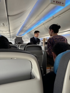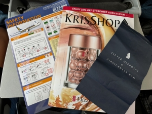 Deborah, a particular cabin crew member, made a good impression on me. We met Deborah during the PEN—SIN leg, where she was seen helping passengers find an empty overhead bin and stow their carry-on luggage in it. Deborah was also seen patrolling the cabin during boarding and distributing children’s amenities to the kids flying onboard. She came across as cheerful and welcoming.