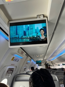 As this is an older aircraft, it does not come fitted with any inflight entertainment system. The aircraft is fitted with drop-down screens mounted onto the ceiling, predominantly used to show the aircraft’s safety videos. However, these screens malfunctioned for both legs, resulting in the cabin crew performing manual safety briefings. There is also an old-school radio channel on the armrest of the seat. As Singapore Airlines did not supply any headphones for this short flight, I did not test to see if these channels were still functioning. Due to its age, Singapore Airlines B737-800 NG aircraft are also not fitted with any Wifi onboard.