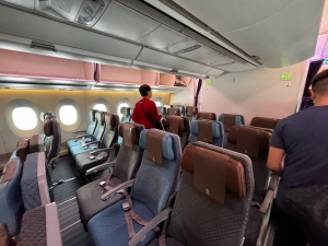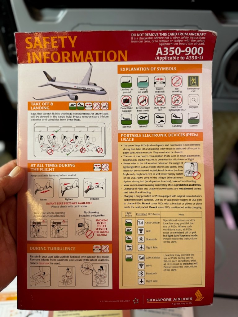 Despite being a short flight (Singapore Airlines’ shortest flight), Singapore Airlines deploys a mix of long-haul and medium-haul twin-aisle and single-aisle aircraft for this route. We flew on the Singapore Airlines A350-900 long-haul version.