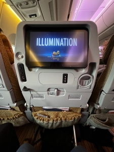 Singapore Airlines fitted an 11.1″ monitor at each of its A350-900 Economy Class seats. As this is a short 1-hour flight, earplugs were not provided, despite entertainment being available. Fortunately, I brought a set of reusable earplugs from my previous Singapore Airlines flight and could still enjoy entertainment from KrisWorld, Singapore Airlines’ Inflight Entertainment system. There are no IFE Controllers found on these Economy Class seats; instead, Krisworld entertainment options were controlled via the responsive touch screen function on the personal TV. Krisworld was loaded with tons of entertainment options such as movies, TV shows, news channels and music channels. For movie selection alone, there are hundreds of movies loaded in the KrisWorld, intuitively organised in several categories for passengers’ easy navigation.