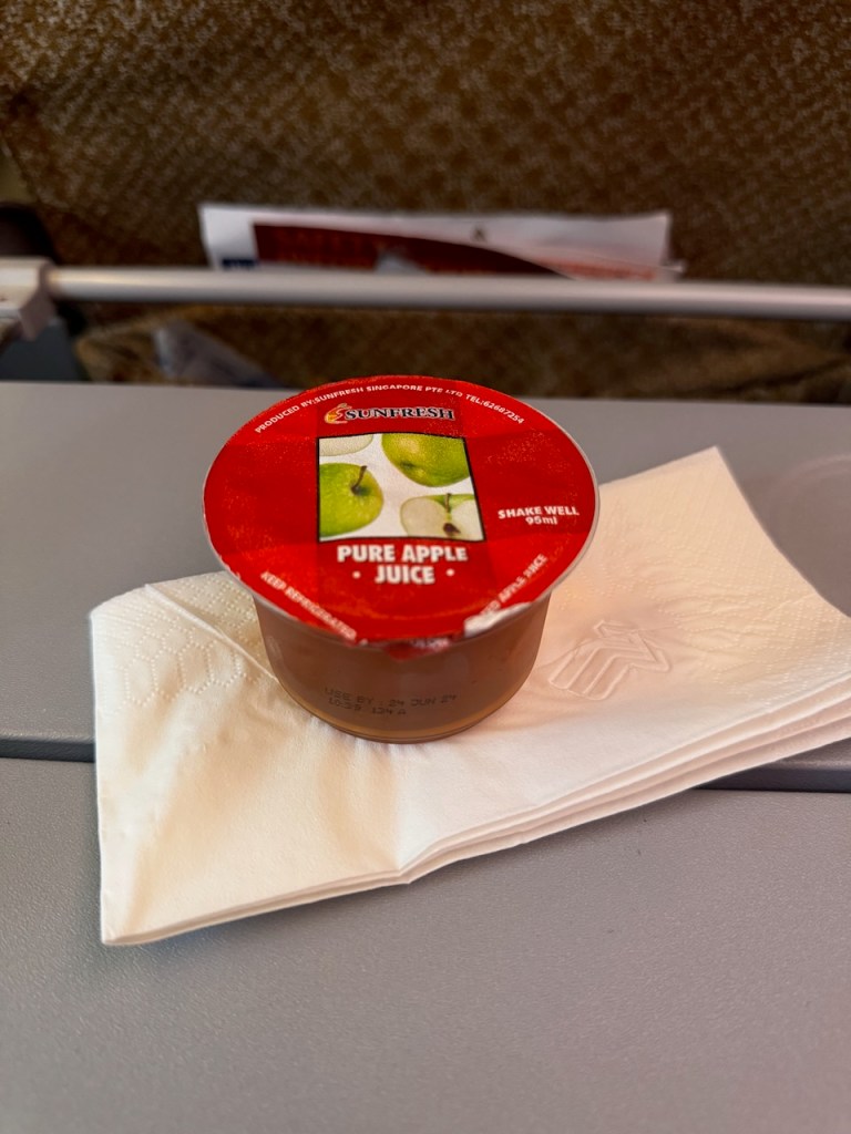 We were served apple juice in Economy Class for this short flight to Kuala Lumpur.
