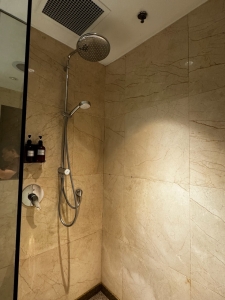 SilverKris Lounge at Changi Airport Terminal 2 has four shower rooms inside the restrooms. Showering facilities operate on a first-come first-served basis and require no booking. I was informed by the staff at the restroom that we could just walk into any empty shower room. The best thing about the shower rooms in SilverKris Lounge at Changi Airport Terminal 2 is that there is no queue for usage. We were able to use the shower facilities at the time we arrived at the lounge. The shower room in SilverKris Lounge at Terminal 2 is decked in sand-coloured marble tiles, with a wet and dry area. I find the shower rooms a tad too tight, as space is a challenge for passengers carrying cabin-size luggage that requires a shower. The shower cubicle was fitted with both a rain and regular shower head. One point to note is that there are no toilets inside the shower rooms.