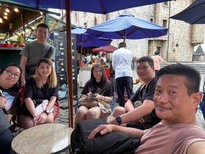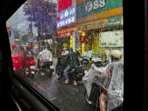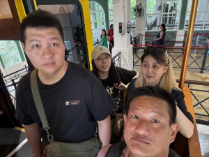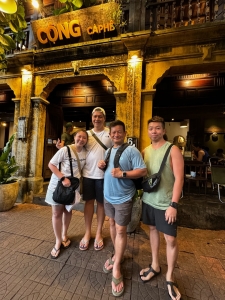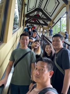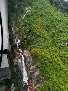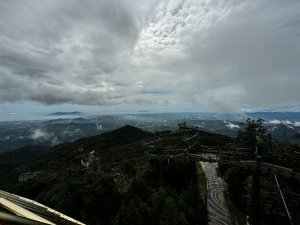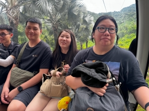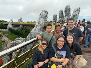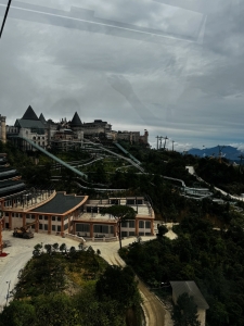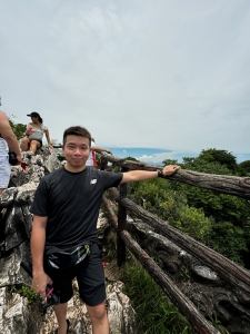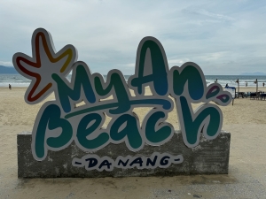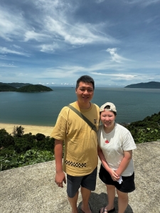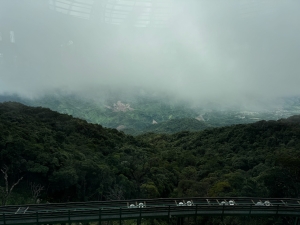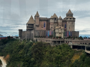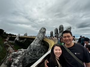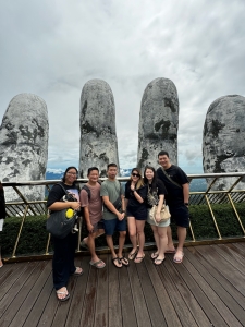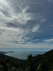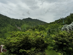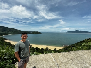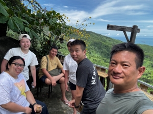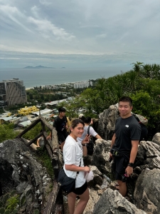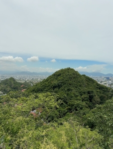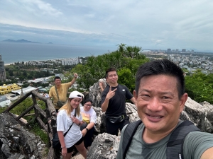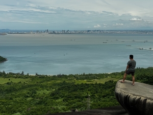 After a few pictures, we continued to drive up the mountain. As we were being driven up the windy roads, our guide pulled over in front of a cafe. This is our second stop on Hai Van Pass, where we stopped for a coffee break. Rather than calling it a coffee break, our guide wanted to show us the views from this cafe. As he ordered our drinks, our guide encouraged us to walk down the steps onto a rock that jags out into the air for some nice pictures. Taken from a correct angle, it felt that the rock was hanging out into the air. We could see Da Nang City and My Khe Beach sitting across the bay from here. Standing on the rock, looking out into the bay, gave us a sense of liberation.
