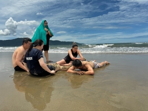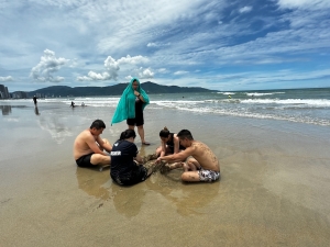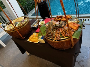 On our way to the Lang Co Bay area, our guide made a brief stop near the base of the Hai Van Pass when he observed we were taking some pictures in the car. The body of water in front of our eye, protected by a natural sandbar, forms the lagoon of Lang Co. Our guide mentioned that the locals stay by the lagoon and farm oysters in it. From this viewpoint, we caught the picturesque view of the mountains seemingly guarding the lagoon and a bridge that ran across the lagoon. Our guide told us this bridge leads to the Hai Van Pass Tunnel, the route we would take when we return to Da Nang later in the day. After taking our fair share of pictures, our guide drove us to a seafood restaurant by the beach, where we had a sumptuous and fresh seafood lunch.