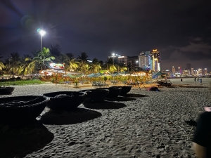 Linh Ung Pagoda was our last stop on this private day trip. We got our guide to drop us off at VinPlaza Mall, the largest shopping mall in Da Nang. After spending a day in the scorching Vietnamese sun, we wanted to cool ourselves off and spent the evening in the air-conditioned mall. Despite being the largest shopping mall in the city, I thought the shops were a tad limited. The mall only has 4 levels, with restaurants occupying the top floor. We spent a fair bit of time shopping in the supermarket on level 2. After shopping, we wanted to spend the night watching the Fire and Water show on the Dragon Bridge, one of the few tourist attractions in Da Nang City. We walked to Han River at around 8.15 pm and waited by the bank for the show. As 9 pm came by, there was no show on the bridge. Upon checking with our resort hostess, we were informed the show was cancelled due to the demise of the Vietnamese Party Chief. Seeing that there was nothing much we could do in Da Nang City, plus we had a long day visiting the sites, we returned to our resort to rest.