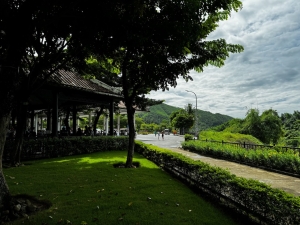 Hai Van Pass is a mountainous road that rose to almost 500m up the mountains between Da Nang and Hue City. However, this mountainous road was less used after the construction of the Hai Van tunnel, which cut the journey by more than 1 hour. Today, Hai Van Pass is mainly used by tourists who want to get scenic views of the bay areas of Central Vietnam. As the road winds up the mountain, our guide stopped at a scenic point where we got a beautiful view of an unspoiled beach and the islands near Da Nang. It felt very tranquil here, with no crowd on the roads, the beach, or ships plying on this part of the bay. From the side we were on, we could see some low clouds brushing the mountain’s peak that we would be driving up. And this is just the beginning of the gorgeous view that awaits us further up the pass.