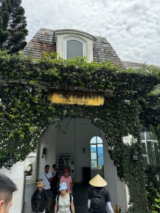 We continued our drive up Hai Van Pass after a cooling iced Vietnamese coffee. Our next stop on Hai Van Pass was another cafe. Our guide told us this is the highest point of the Hai Van Pass road, and from here on, the road winds down to sea level. At this cafe, we were treated to the views of Lang Co Bay, sitting on the other side of the mountain. The cafe has a private lookout that extends into the air. While we could see the Bay Area and the part of Vietnam stretching to Hanoi in the North, I thought the views here weren’t as great. Due to the vegetation and the shape of the terrain, we can only see part of the bay and the sea. After resting and enjoying another cool drink, we descended Hai Van Pass towards Lang Co Bay.