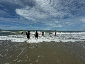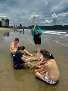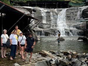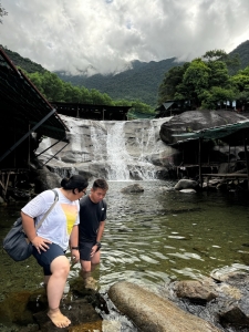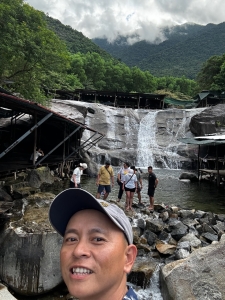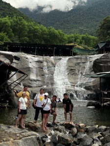 After lunch, we drove on a narrow road next to the lagoon, where we could see oyster farms. The coastal road soon turned into forest roads and a single-lane gravel road leading us into a small town. After we had parked the car, our guide led us through a small forest road on foot, and after about 3 minutes of walking, we arrived at Thac Do Stream. At the end of Thac Do Stream sits a small waterfall, the waterfall was so secluded that only locals know of its existence. The natural wall (due to the terrain formation), no taller than 3 storeys high, with streams of water rushing down from the higher terrain. There is a shallow waterhole in front of the wall where we saw some children swimming. I like the tranquillity here as few people are around. Listening to the water flow gushing down the waterfall and the occasional laughter of children playing in the cooling water hole, immediately a sense of relaxation ensued. We left the secret waterfall after taking some pictures.