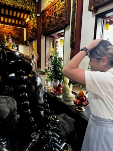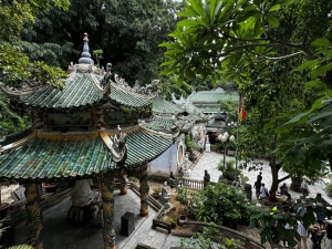 After offering our prayers to the Lady Buddha, we walked past a stone gate and came to the main temple of Linh Ung Pagoda. 18 stone Arhats, disciples of Buddha were installed in the large main square in front of the Main Temple. Each statue has life-like expressions as though they are protecting visitors who walk past this square from evil. Our guide told us the Smiling Buddha installed in the Main Temple was especially efficacious and encouraged us to rub his tummy for good luck. We would not say no to good luck. The Main Temple is home to the Buddha in the centre of the temple, with the Goddess of Mercy on his right and the Manjushri Bodhisattva on his left. The temple exudes a sense of serenity and calm.