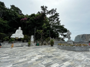 Following the pathway, we came to a crossroads and took the pathway to Linh Ung Pagoda. Rather than an actual towering pagoda, Linh Ung Pagoda is a huge compound with a temple building and a pavilion beside it. The main temple building has distinct Chinese architecture and is covered in white topped with green roofs. Despite its plain colour scheme, the carvings on Linh Ung Pagoda were intricate. There were three buddha stations installed Inside the temple. In front of the temple is a large open deck, where we found a huge marble Buddha statue sitting at the side of the deck. The view of the My Khe Beach area was amazing from this deck, where visitors could get a great photo shot of the beach area. The Pavilion beside the main temple houses a large statue of the Goddess of Mercy (or Lady Buddha, as the locals termed it). We left Linh Ung Pagoda after praying to the Buddha statues here.