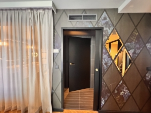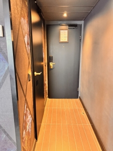 The entryway to the Maestro Suite does not have any furnishings; it merely acts as a pathway from the main entrance to the rest of the suite. Here is where the door to the powder room is located. It is a pity that the entryway was not fitted with hooks allowing us to hang our winter jackets.
