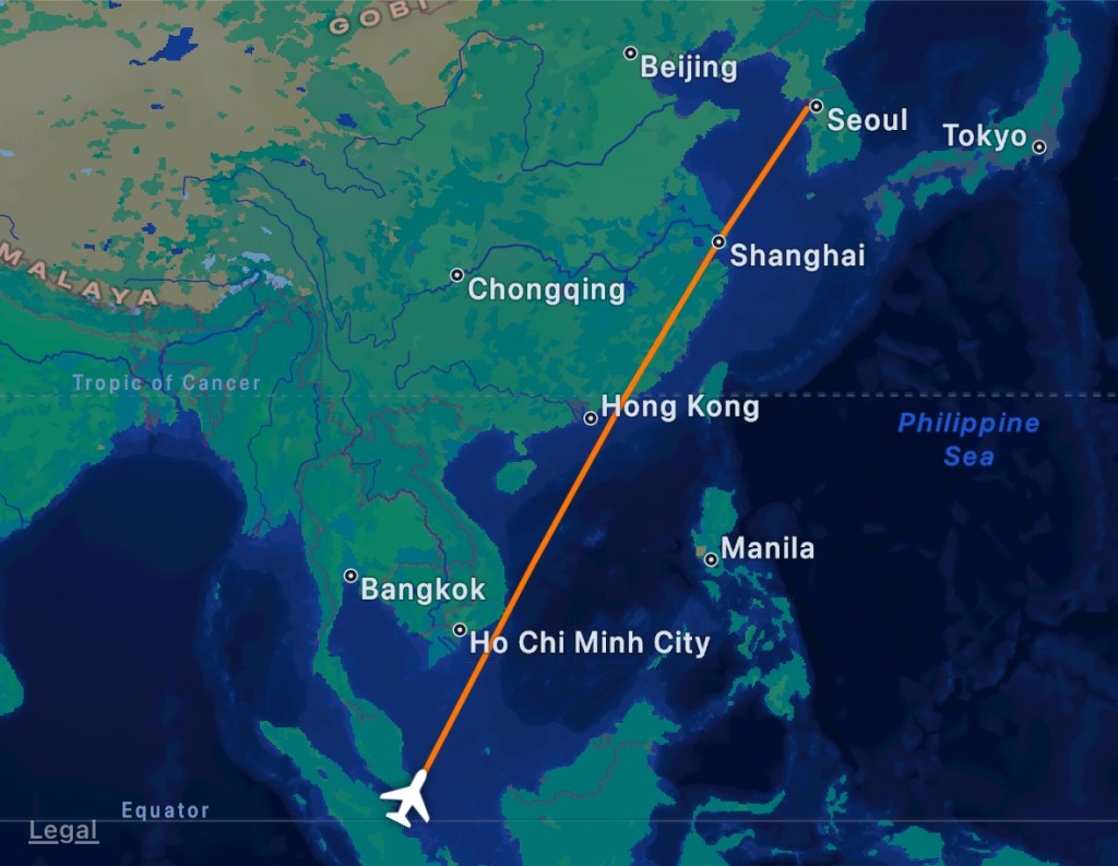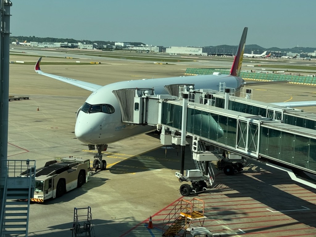 The flight path of OZ752 and OZ751 flying between Singapore and SeoulAsiana Airlines A350-900 that flew us between Singapore and Seoul