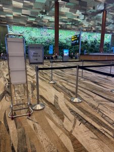 Asiana Airlines departs from Changi Airport Terminal 3. The airline operates check-in counters in Row 8, to the right of the terminal building, with Door 6 being the nearest door to these counters. Of the seven check-in counters, two are dedicated to Business Class passengers, one to their Diamond-tier members, two for Economy Class passengers, and another two for passengers who have completed their check-in online. Asiana Airlines check-in counters open 3 hours before the flight. As we arrived slightly ahead of the counter opening time, we used Asiana Airlines’ early check-in counter in counter 7. Although not located in a dedicated Business Class counter, the ground staff’s check-in experience was very pleasant. The staff welcomed us and were very efficient in processing our check-in, and we were checked in within 5 minutes. Before sending us off to our boarding gates, the friendly ground staff presented us with a lounge invitation and provided us with directions to the two lounges we could use.