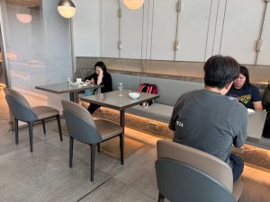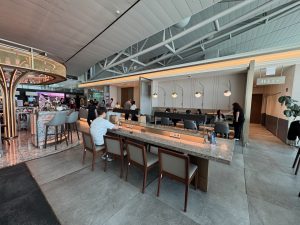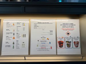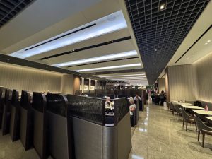 Flying out of Singapore, Asiana Airlines Business Class passengers can use the SATS Premier Lounge or Singapore Airlines SilverKris Lounge in Terminal 3. Both lounges are located near each other, one floor above the airside departure hall. We went to the SilverKris Lounge. The escalator diagonally opposite Bacha Coffee brings us directly to the lounge entrance. As the flagship lounge in their home port, the Singapore Airlines SilverKris Lounge did not disappoint. The lounge was spacious, with clearly marked areas for relaxing and dining. The area to the right of the main entrance houses the lounging area, which is mostly furnished with armchairs. There are also some high tables with power outlets that double up as work tables for passengers who want to get some work done. Singapore Airlines thoughtfully included a small buffet area in this part of the lounge, allowing passengers to grab some small bites without having to walk over to the main buffet line on the other side of the lounge. The bar is also located to the right of the entrance to the SilverKris Lounge, where passengers can select from a wide range of drinks, including cocktails and mocktails, from the extensive drink menu.