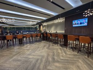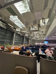 The lounging area has high ceilings that made this part of the lounge feels airy