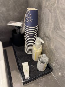 Some bathroom amenities provided by Raffles Sentosa Singapore