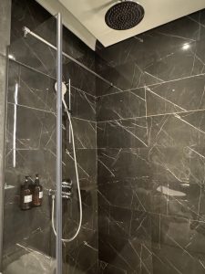 The kitchenette has a full-sized fridge designed to blend into the room’s decor. The full-sized fridge with a freezer at the bottom allows guests to do grocery shopping and cook their meals in the suite. I like the island table design in the kitchenette area, where the hotel maximises space by installing drawers to stow kitchen equipment. The hotel installed a Nespresso machine on this table island. Despite supplying two Nespresso capsules, I find it weird that the hotel does not provide sugar. As we did not see any work desk in the suite, I would have assumed that this island table was meant to double up as a work desk, as there is a power outlet fitted at the table.